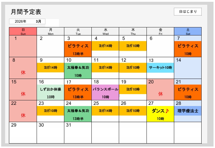 ピラティス・ヨガ・太極拳レッスンを開催しています。